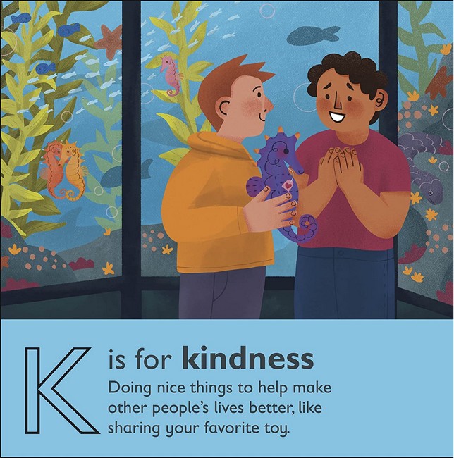 Every letter of the alphabet is paired with bold illustrations to support language learning, and a handy list of discussion points at the end gives adults the appropriate tools to spark further conversations and discussion around the topic.