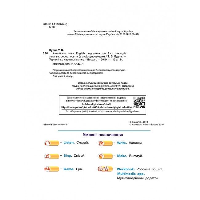 Підручник з аудіосупровідом Англійська мова 2 клас НУШ Авт: Будна Т. Б. Вид-во: Богдан 22532