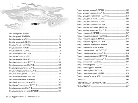 І ось восьмирічний сюрприз із минулого Патрика з’являється на порозі, вдирається в їхні життя — і це перевертає все. Хоча це не зовсім ті зміни, які вона передбачала, Марні вмить сприймає їх як появу сім’ї. Але Патрик, боячись нового болю, тікає в себе. Раптом дві дуже різні частини прекрасного цілого стає дедалі важче сумістити. Як Марні може довіряти магії Всесвіту, коли він, здається, робить усе можливе, щоб збити її з ніг?