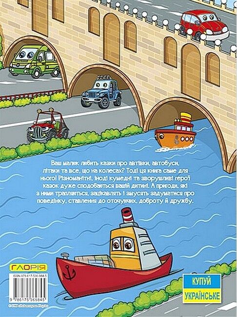 Ваш малюк любить казки про автівки, автобуси, літаки та все, що на колесах? Тоді ця книга саме для нього! Різноманітні, іноді кумедні та зворушливі герої казок дуже сподобаються вашій дитині. А пригоди, які з ними трапляються, зацікавлять і змусять задуматися про поведінку, ставлення до оточуючих, доброту й дружбу.