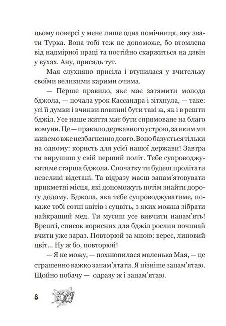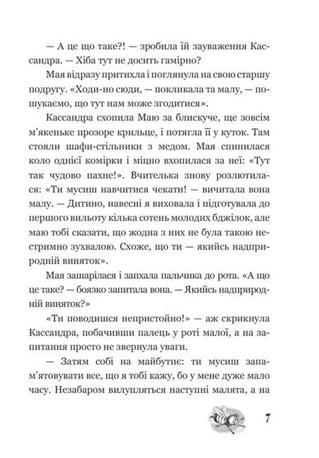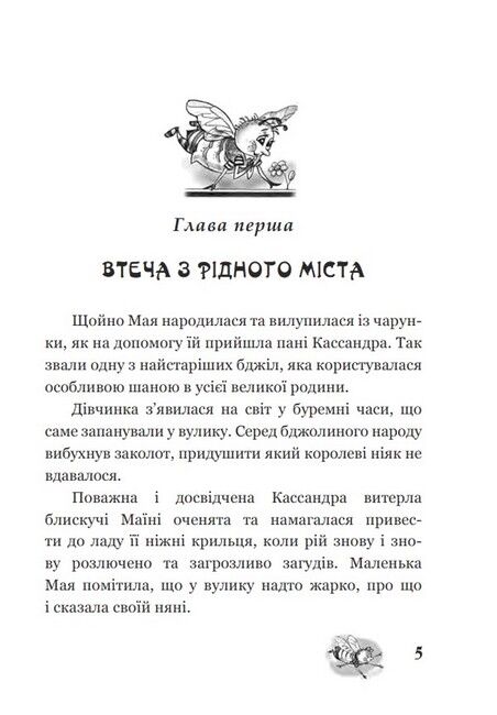 Гадаєте, навчатися, з радістю пізнавати світ і потрапляти у різні халепи можуть тільки діти?.. Помиляєтеся! Казкова бджілка Мая, яка не погоджується жити за строгим і чітким розкладом свого вулика, робить це справді талановито. Вона прагне щодня літати все далі й далі, вище й вище, підкорюючи нові й нові простори. Бджілка мріє познайомитися з різними мешканцями нашої чудової планети, а особливо – людиною! Мая прагне знайти нових друзів та стати незвичайною, видатною бджолою. Що з цього вийшло – дізнаєтеся, прочитавши книгу відомого німецького письменника Вольдемара Бонзельса «Пригоди бджілки Маї».