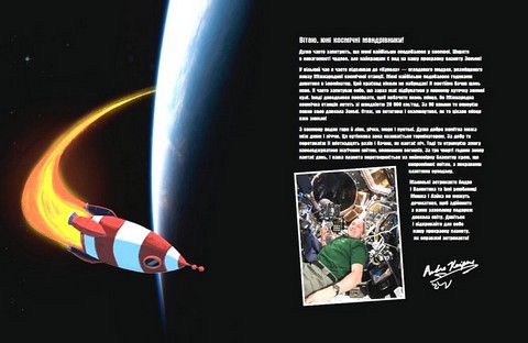 Стрибай у ракету й досліджуй Землю! Це навколосвітня подорож тривалістю 90 хвилин на швидкості 28 000 кілометрів на годину! Ти побачиш з космосу шістнадцять особливих місць, що змусить тебе по-іншому поглянути на нашу планету. Ця незвична книжка з неймовірними зображеннями — космічна пригода, атлас та енциклопедія водночас. Вона містить унікальні фотографії, зроблені Андре Кайперсом під час його космічної місії, ілюстрації та цікаві факти, що не дадуть нудьгувати!