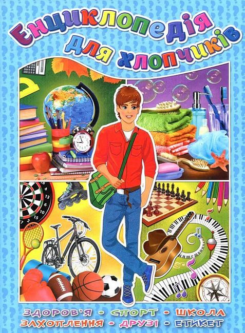 Ця енциклопедія - справжня знахідка для сучасного хлопчика. Вона допоможе тобі стати сильним, сміливим, впевненим у собі, навчить як позбутися багатьох недоліків. На сторінках видання ти знайдеш багато цікавих фактів, добрих порад і корисних рекомендацій. Що таке особиста гігієна? Яким видом спорту зайнятися? Яке вибрати для себе цікаве хобі? Як доглядати за домашніми тваринами? Що потрібно брати з собою в похід? Як налагодити стосунки зі своїми батьками та друзями? Що потрібно знати про дівчат і як їм сподобатися? Як повинен поводитися й одягатися справжній чоловік? Як надати першу медичну допомогу? Як діяти в екстремальних ситуаціях? На всі ці та інші запитання ти знайдеш відповіді в цій енциклопедії. А яскраві ілюстрації зроблять читання ще більш захоплюючим і незабутнім.