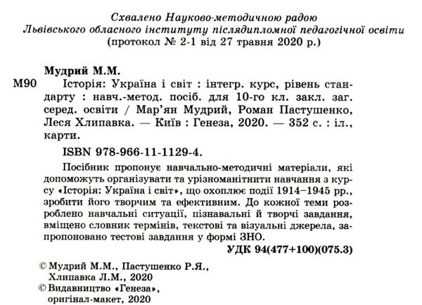 Навчально-методичний посібник - Історія: Україна і світ (інт.курс), 10кл. Мудрий М.М. Генеза. 75694