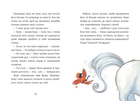 Курт не хоче бути єдинорогом і вважає, що не повинен рятувати ніяку принцесу. А саме про таку допомогу його дуже-дуже просить зухвалий пташок Тріль! Чи погодиться Курт кинутися в цю пригоду? У нього ж мурашки по спині біжать — ні-ні, зовсім не від страху, а від співчуття полоненій принцесі!.. Іронічна та дотепна історія для всієї родини!