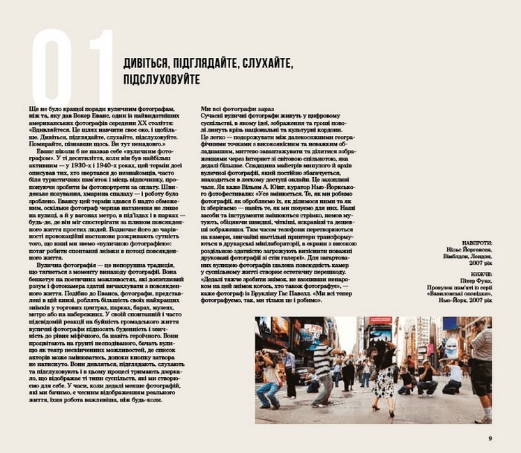 Наблизьтеся до світу вуличної фотографії. Ця книга зібрала 43 сучасних митців, які не втомлюються документувати повсякденність під різними кутами. Серед них — видатні майстри, члени Magnum, як-от: Брюс Ґілден, Мартін Парр, Алекс Вебб, а також інші фотографи з різних країн, кожен з яких презентує унікальне бачення світу.