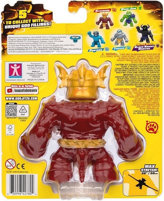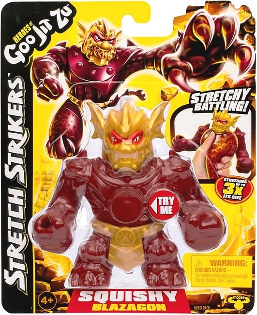 Представляємо новий, епічний набір героїв Heroes of Goo Jit Zu Stretch Strikers! Блейзагон повертається та готовий протистояти грізним лиходіям Goo Jit Zu — Rock Jaw & Orbitox! Він має здатність розтягуватися до 3-х разів, та не забудьте застосувати EPIC Stretch Attack! Збери всіх персонажів Goo Jit Zu Stretch Strikers з унікальним наповненням!