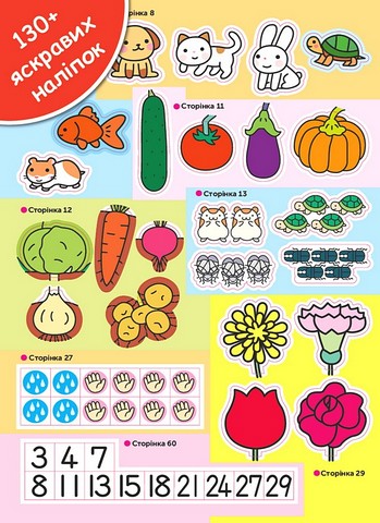 130+ яскравих наліпок використовуються в завданнях в ролі винагороди за виконану працю!