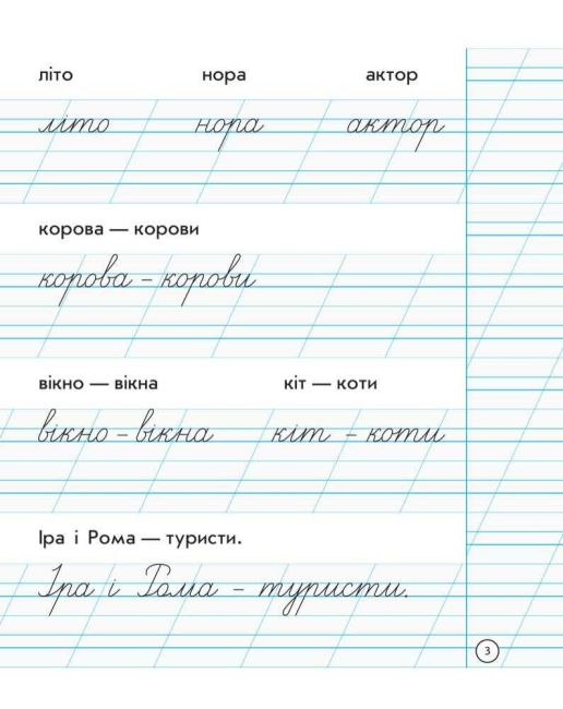 Вправи посібника носять пропедевтичний характер: наведено форми однини й множини, слова з чергуванням голосних і приголосних у корені, спільнокореневі слова тощо. Тексти для списування дібрані від легких за написанням букв, з’єднань і кількістю слів до перевірних, контрольних.