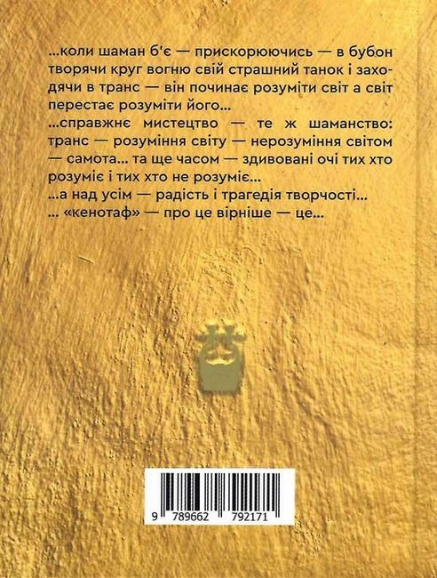…коли шаман б’є – прискорюючись – в бубон творячи круг вогню свій страшний танок і заходячи в транс – він починає розуміти світ а світ перестає розуміти його…