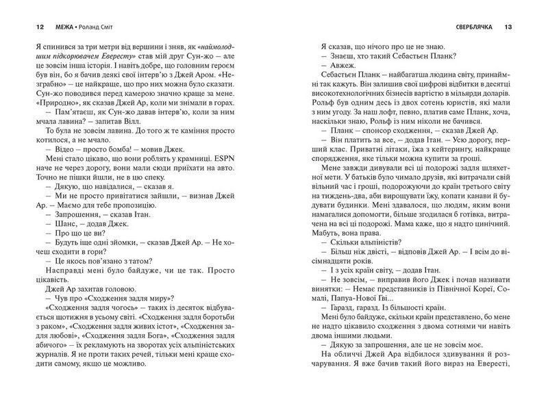 Роланд Сміт пропонує читачеві нову пригодницьку історію з незабутніми й потужним сюжетом. Роман переносить у захопливу, сповнену ризиком подорож, яка є продовженням бестселера «Пік».