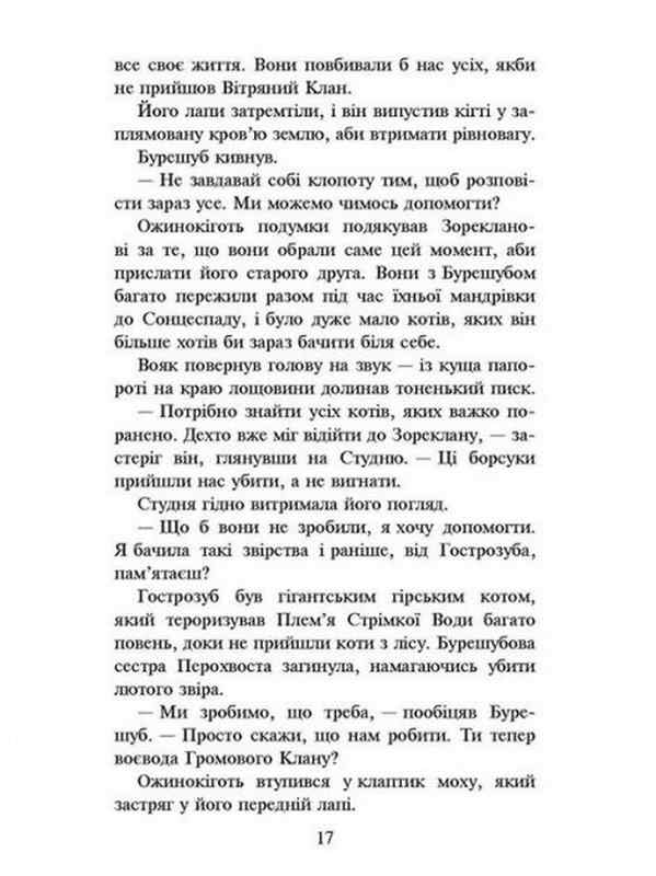 Коти-вояки Нове пророцтво Захід Книга 6. Перш ніж настане мир, кров проллє кров, і озеро стане багряним загадкове пророцтво Зореклану нарешті здійсниться. Ворог уже підготував підступну пастку і чекає на вирішальну битву...
