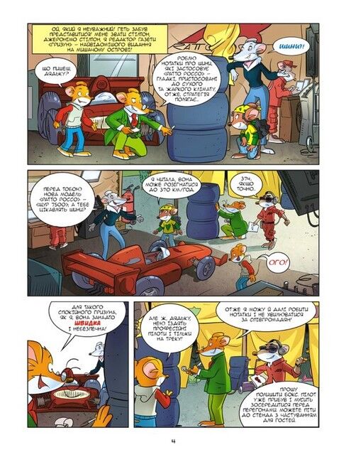 Джеронімо Стілтон є редактором газети «Гризун» — найпопулярнішого видання на Мишачому острові. На дозвіллі він любить оповідати цікаві веселі історії. Джеронімо цінує спокій, та йому не вдається відпочивати, адже щоразу доводиться протидіяти своїм найзапеклішим ворогам — котам-піратам, які знайшли спосіб подорожувати в часі, щоб