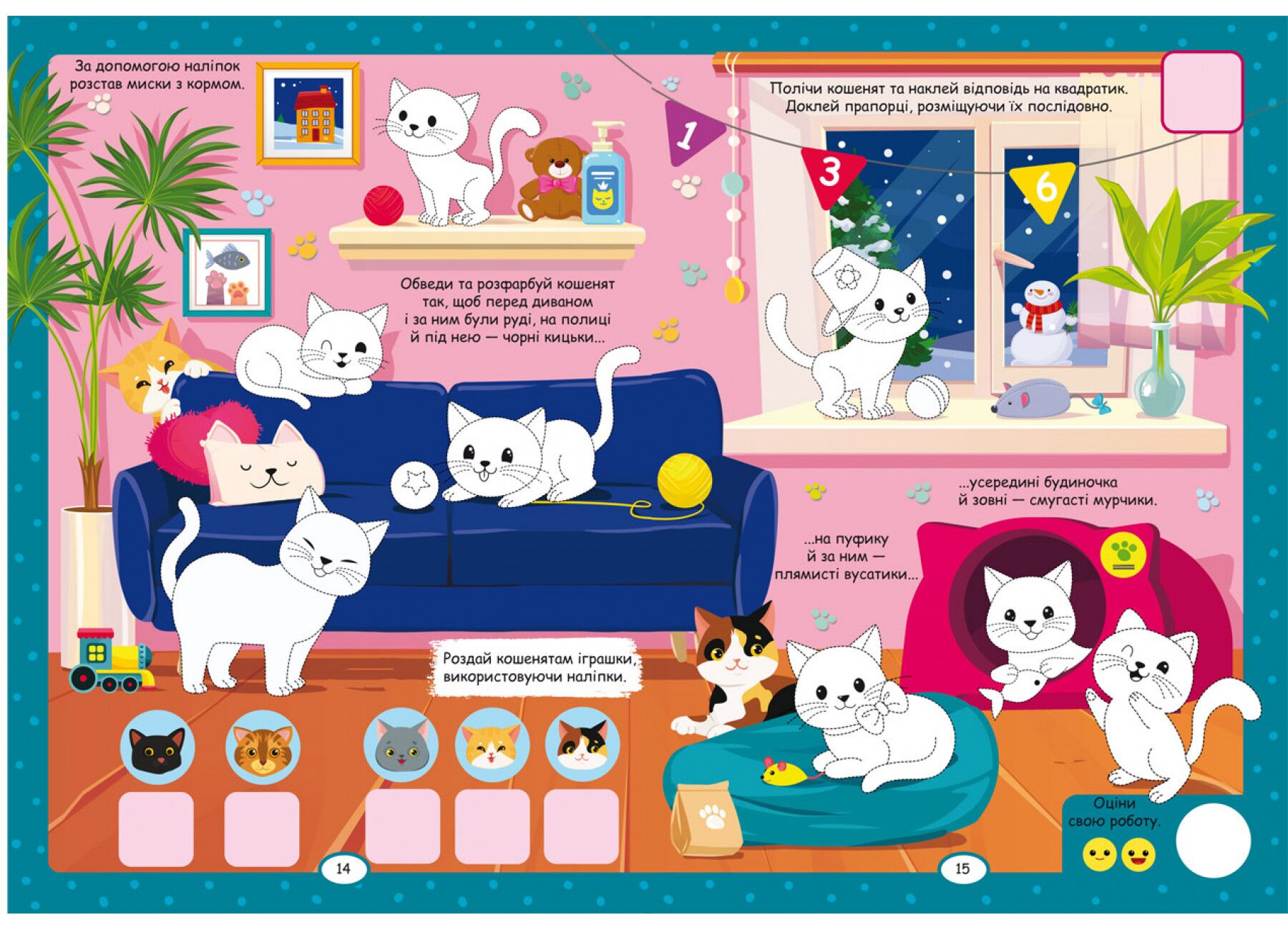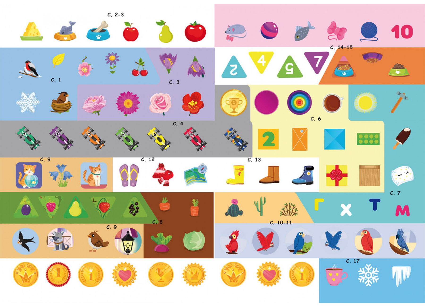 Запропоновані нами завдання більше нагадують ігри, що так подобаються маленьким хлопчикам і дівчаткам.Тому виконувати їх буде зовсім не нудно. До того ж ми постаралися урізноманітнити вправи, щоб діти могли не тільки малювати та приклеювати картинки, а й обводити графічні елементи, удосконалюючи каліграфію, а також рахувати, запам’ятовувати літери та складати з них слова.