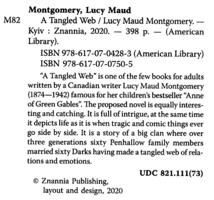 A TANGLED WEB / ЗАПЛУТАНЕ ПАВУТИННЯ LUCY MAUD MONTGOMERY ВИД-ВО: ЗНАННЯ