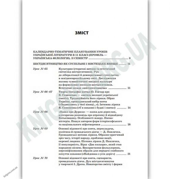 Усі уроки української літератури 11 клас ІІ семестр Профіль українська філологія. Навчальний посібник містить конспекти всіх уроків української літератури профільного рівня профіль українська філологіядля ІІ семестру 11 класу, які розроблено із урахуванням змін, здійснених Міністерством освіти і науки України 2017 року.