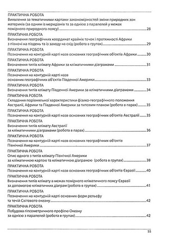 Посібник створено за змістом модельних навчальних програм з географії для 7 класу Нової української школи. Містить орієнтовне календарне планування уроків географії у 7 класі, сценарії досліджень та проєктів для організації самостійної діяльності школярів на основі групової форми роботи до вивчення всіх тем курсу з додатковими матеріалами для їх виконання, алгоритми проведення різнопланових практичних робіт у класі й на місцевості, приклади тестових завдань різних рівнів для діагностики результатів навчання учнів з географії.