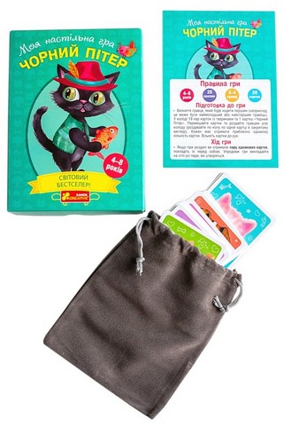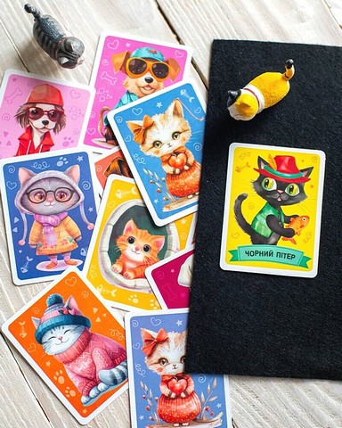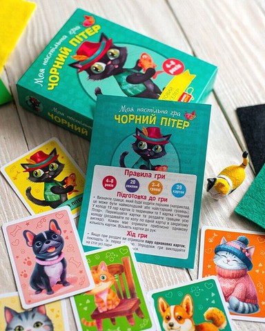 \nВаше завдання — збирати пари однакових карток і намагатися не залишитися з «Чорним Пітером» наприкінці гри. Гра розвиває пам’ять, уважність і навички комунікації — і все це з посмішкою!