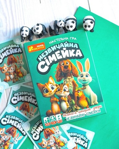 Настільна гра «Незвичайна сімейка» — це динамічне карткове змагання для дітей і дорослих. Ваше завдання — зібрати якомога більше повних сімейок із 6 карток.
