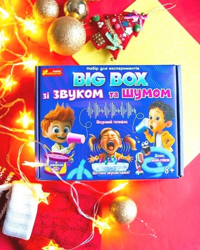 Уявіть: звук можна не лише почути, а й побачити! Унікальний набір "BIG BOX зі звуком та шумом" відкриє дітям від 8 років захопливий світ науки й експериментів. Це великий освітній комплект із 10 безпечними дослідами, які у цікавій і зрозумілій формі пояснюють, як виникає звук, як він поширюється та чому ми сприймаємо його по-різному.