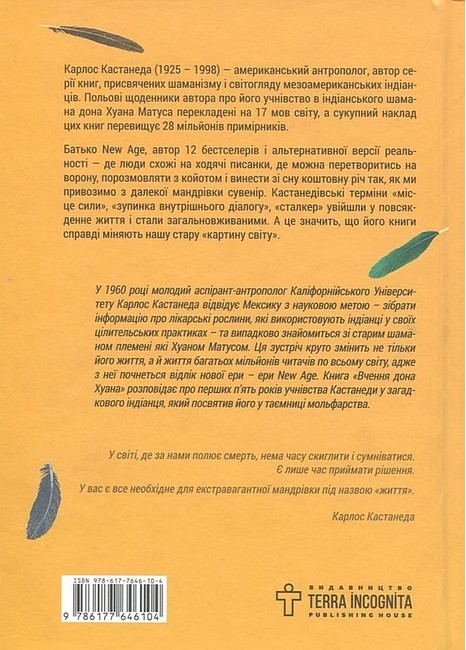 Вчення Дона Хуана - це історія чудової подорожі, яка залишила незабутнє враження на життя мільйонів читачів по всьому світу, незалежно від того, сприймаєте ви книгу як етнографічний факт або творчу фантазію.