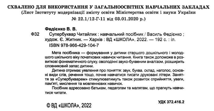 Буквар для дошкільнят: “Читайлик”. Подарунок маленькому генію. Федієнко Школа 493