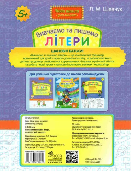 ВИВЧАЄМО ТА ПИШЕМО ЛІТЕРИ КОМПЛЕКСНИЙ ТРЕНАЖЕР НОВА ШКОЛА ДЛЯ МАЛЯТ 5 ШЕВЧУК Л. АССА