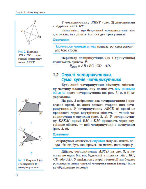 Цей підручник призначений для учнів 8 класу загальноосвітніх навчальних закладів та підготовлений відповідно до нової програми з геометрії. Він містить систематизований матеріал, що допомагає учням послідовно засвоювати основні поняття, теореми та правила геометрії, а також застосовувати їх у практичних завданнях.