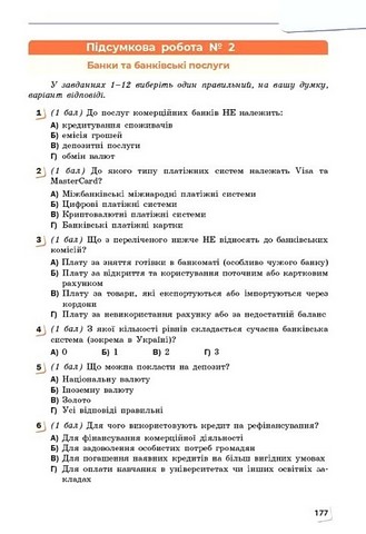 Крім того, у підручнику передбачена робота для контролю теоретичних знань, що дає можливість перевірити та закріпити отримані знання за вказаними темами. Завдяки таким завданням учні можуть систематизувати матеріал і оцінити свої досягнення в розумінні фінансових процесів.