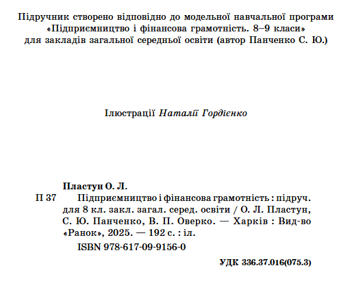 Підручник Підприємництво і фінансова грамотність 8 клас НУШ Авт: Пластун О.Л. та ін. Вид-во: Ранок 112041
