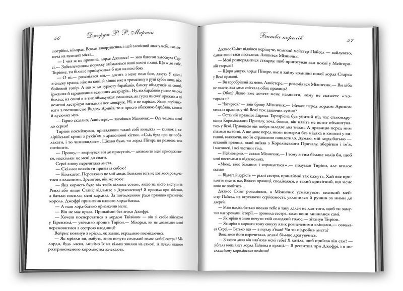 Друга книга циклу - "Битва королів" - це історія зради й підступу, хаосу й руїни, бо вже почалася братовбивча війна за стародавній Залізний трон, від якої здригнеться земля. Книга "Битва королів" про світ Семи Королівств - це світ суворих земель вічного холоду та земель вічного літа. Світ лордів і героїв, воїнів і магів, чорнокнижників і убивць, лицарів та лицедіїв - всіх, кого звела воєдино Доля на виконання стародавнього пророцтва. Це світ небезпечних пригод, великих діянь і найтонших політичних інтриг. Світ, в якому зникла магія та давно загинув останній дракон.