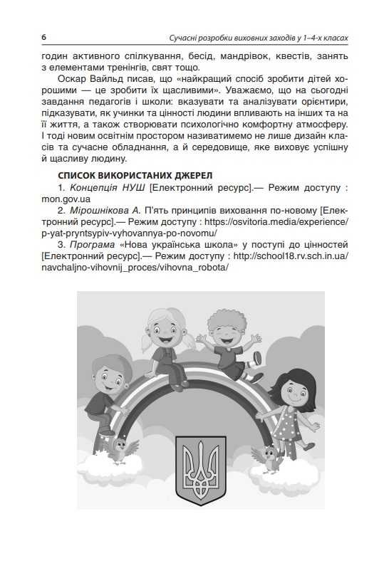 Сучасні розробки виховних заходів у 1–4-х класах НУШ Виховна робота Оніщенко І. Основа. Як зацікавити сучасних учнів спільною діяльністю? Як навчити їх спілкування, самостійності, оцінювання власних дій та вчинків, виявлення власної позиції у ставленні до інших та світу? Як сприяти набуттю досвіду моральної поведінки та творчій самореалізації особистості?