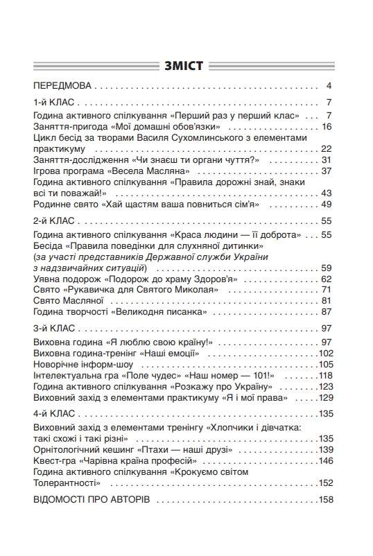 Ви знайдете відповіді на ці та інші запитання у посібнику, матеріали якого дібрано відповідно до положень Концепції Нової української школи та з урахуванням життєвого досвіду сучасних школярів, адже всі розробки виховних заходів, різноманітних за формою проведення (квест, година активного спілкування, тренінг, кешинг, інформ-шоу, інтелектуальна гра тощо), побудовано на засадах діяльнісного підходу, з використанням інноваційних, інтерактивних методів і прийомів виховання виховання у взаємодії, у практичній діяльності.