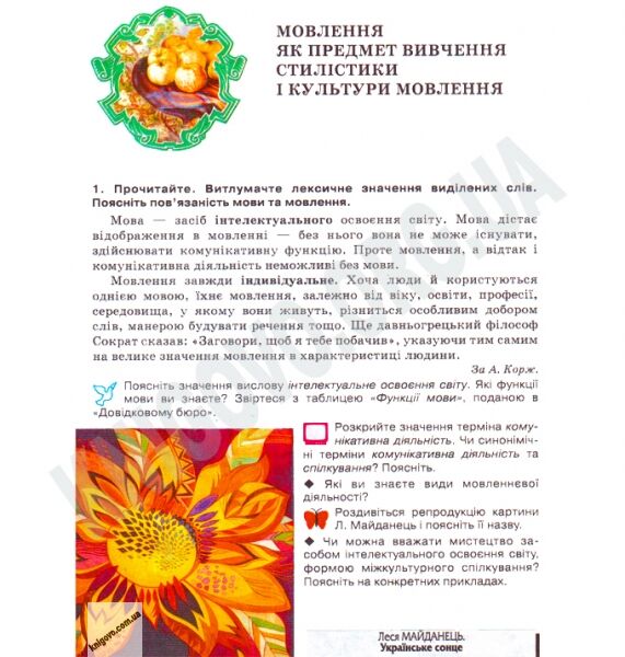 Підручник Українська мова 10 клас Академ Авт: Глазова О. Кузнецов Ю. Вид-во: Освіта 4247