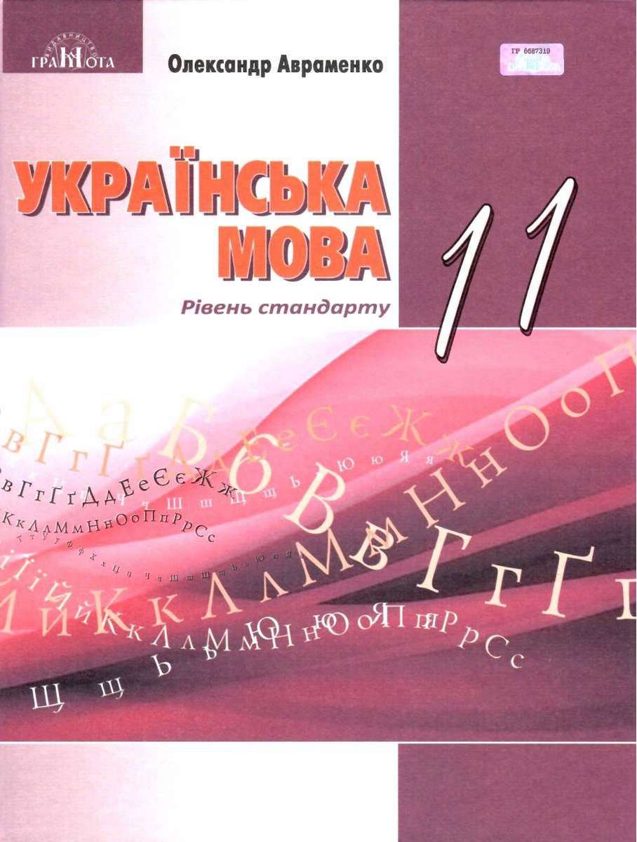 Підручник Українська мова 11 клас Рівень стандарту Авраменко О. Грамота. Підручник відповідає вимогам Державного стандарту освіти та чинній програмі з української мови для 11 класу (2019, рівень стандарту).