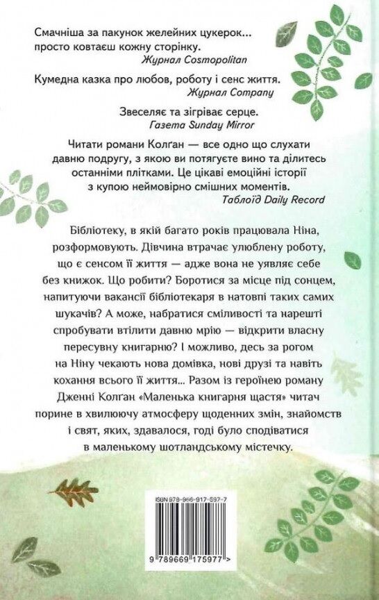 Разом із героїнею роману Дженні Колґан «Маленька книгарня щастя» читач порине в хвилюючу атмосферу щоденних змін, знайомств і свят, яких, здавалося, годі було сподіватися в маленькому шотландському містечку.