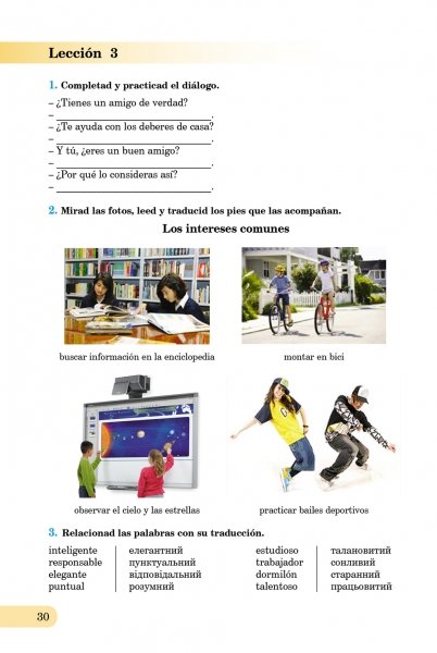 Підручник з Іспанської мови для 6 класу за Новою програмою 2 рік навчання продовжує серію навчальної літератури для оволодіння іспанською мовою у 6 класі як другою іноземною. Система вправ і завдань, раціонально організований мовний, мовленнєвий та ілюстративний матеріал, засоби орієнтування дозволяють учням оволодіти іспаномовним спілкуванням в усній та писемній формі. Підручник містить короткий граматичний довідник, вирази класного вжитку та іспансько-український словник.