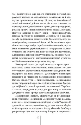 Роман поєднує реалізм та утопію. До товариства україномовних макіївських безхатченків потрапляє книга з альтернативною історією про державу, яка існувала тисячу років тому. Автор намагається вписати Донбас в контекст української історії з часів Хрещення Русі.