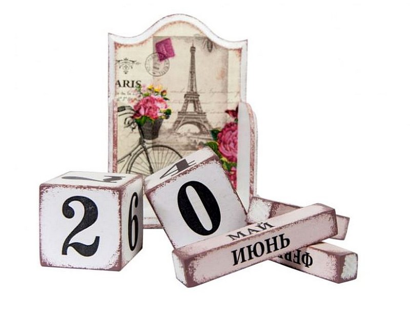 У наборі: заготівля з МДФ, декупажна серветка, клей ПВА, акрилові фарби, кисть д / декупажу, спонж, цифри і місяці для календаря. Для дітей від 8 років.
