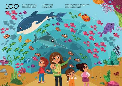 Яскраві детальні ілюстрації, які можна розглядати годинами, та цікаві завдання на уважність і лічбу чекають на дитину у цій чудовій книжечці. Справжній наочний посібник, на сторінках якого дитина може нарахувати 20 зайчиків чи 70 солодких тістечок, показуючи їх пальчиком. І так, аж поки не навчиться рахувати до 100.