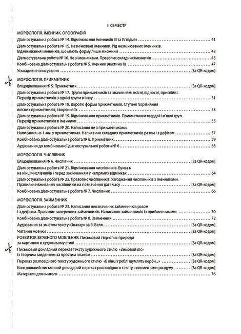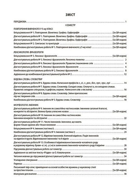 Посібник має зручну форму зошита, що містить завдання для всіх видів оцінювання з української мови за 6-й клас, зокрема: