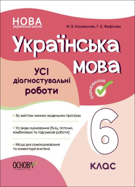 Усі діагностувальні роботи Українська мова 6 клас НУШ Авт: М.В. Коновалова Г.Є. Фефілова Вид-во: Основа 89489