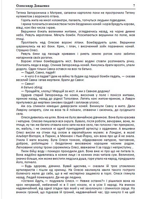 «Україна в огні» — драматична воєнна кіноповість. Автор як очевидець-фронтовик з надзвичайним драматизмом зображує воєнні жахіття, протиставляючи цій руйнації любов. «Ніч перед боєм» — оповідання, в основу якого покладено реальний бойовий епізод, що демонструє героїзм народу і війська. «Зачарована Десна» — романтична кіноповість, присвячена спогадам автора про мальовничу красу природи рідного краю. Твори є обов’язковою частиною шкільної програми. Олександр Довженко — видатний український письменник і кінорежисер, автор кіноповістей «Україна в огні», «Зачарована Десна», «Поема про море», «Антарктида», фільмів «Звенигора», «Земля» тощо.