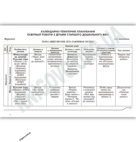 Планування освітньої роботи з дітьми старшого дошкільного віку за програмою “Українське дошкілля” 14840