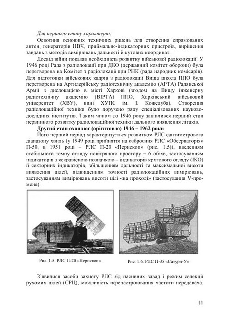 Викладаються принципи побудови радіолокаційних станцій наземного базування та наводяться основні технічні рішення щодо їх побудови, пояснювальні рисунки принципів та методів радіолокації, структурні, функціональні схеми основних систем радіолокаційних станцій та їх складових частин. Аналізуються вплив характеристик цілі та завад на роботу РЛС, а також методи захисту РЛС. Наведені основні дані щодо побудови системи АСУ РТВ та системи вторинної радіолокації на основі аналізу побудови наземних радіолокаційних запитувачів.