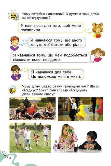 Яскравий підручник "Я досліджую світ" з інтегрованого курсу для першокласників побудований у формі запитань та різних варіантів відповідей на них, що дозволить ученикам сформувати власну думку на багато різних питань.