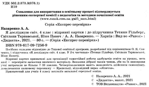 Експрес-перевірка Я досліджую світ Дидакта 4 клас НУШ До підручника Гільберг Т. та ін. Авт: А. А. Назаренко Вид-во: Ранок 63564