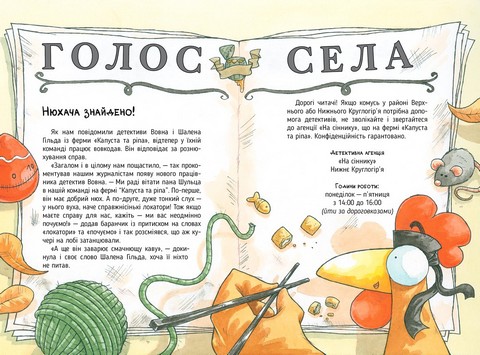 Якщо ферма стара, то там тиша й спокій? Та де! Баранчик Вовна разом із куркою Гільдою відкрив на фермі… детективну агенцію «На сіннику»! Відтоді приятелі-детективи розслідують справи так, що аж пір’я летить.