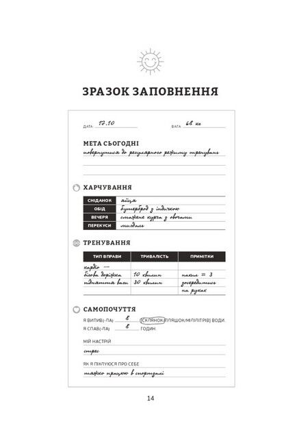 Цей простий у використанні фітнес-щоденник допоможе вам стати здоровішими! Якщо хочете схуднути, більше займатися спортом чи змінити щось у догляді за собою, скористайтеся цією зручною книжечкою. Завдяки цьому щоденнику ви зможете дотримуватися плану й не відстати від графіка. Щоб сформувати й закріпити звички до здорового харчування та фізичних вправ, фіксуйте в ньому щоденні позитивні зміни.