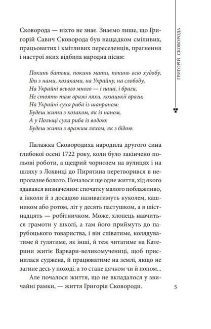 Григорій Савич Сковорода (1722—1794) — український філософ-містик, богослов, поет, педагог, можливо, і композитор літургійної музики. Він мав значний вплив на сучасників і подальші покоління своїми байками, піснями, філософськими творами, а також способом життя, через що його називали «Сократом».